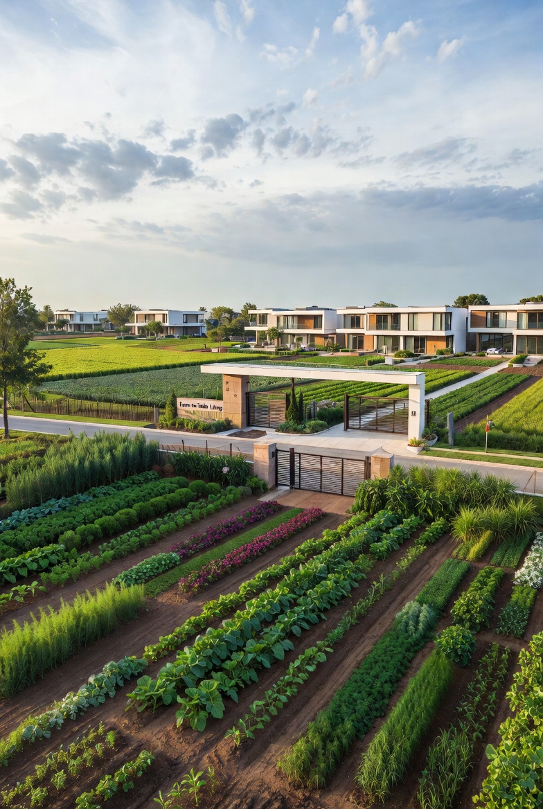 A thoughtfully designed residential community where modern living is seamlessly integrated with on-site agriculture, offering residents direct access to fresh, sustainably grown within the community itself, transforming everyday living into a healthier, more connected lifestyle.
